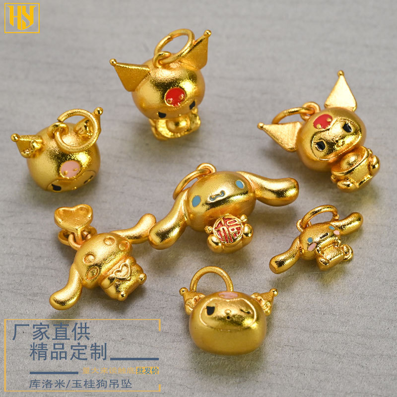 Copper Plated 24K Gold Color-Preserving Cartoon Cute Kuromi Cinnamon Dog Pendant Necklace Accessories DIY Jewelry Accessories Bracelet