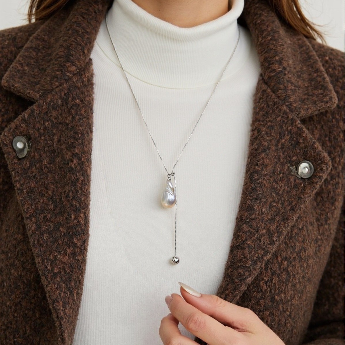 Roman Holiday Baroque Style Fashionable Light Luxury Irregular Pearl Necklace Adjustable Sweater Chain Accessory for Women
