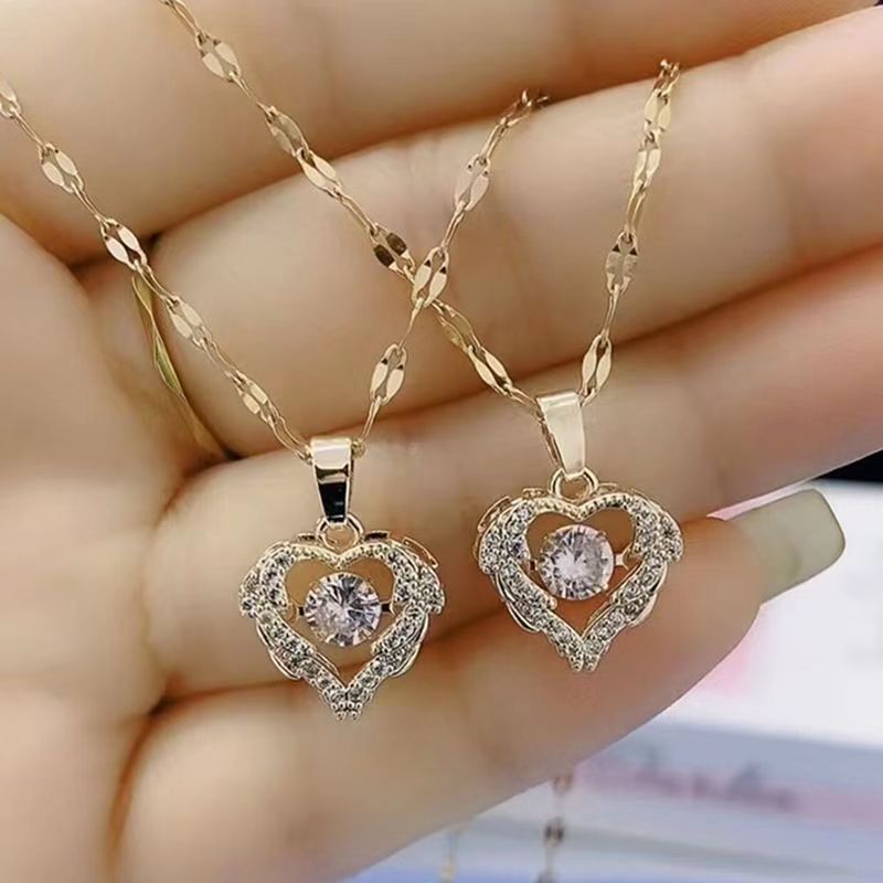 Light Luxury Ocean Heart Smart Titanium Steel Necklace Female Temperament Super Flash Beating Heart Pendant Tanabata Gift Valentine's Day