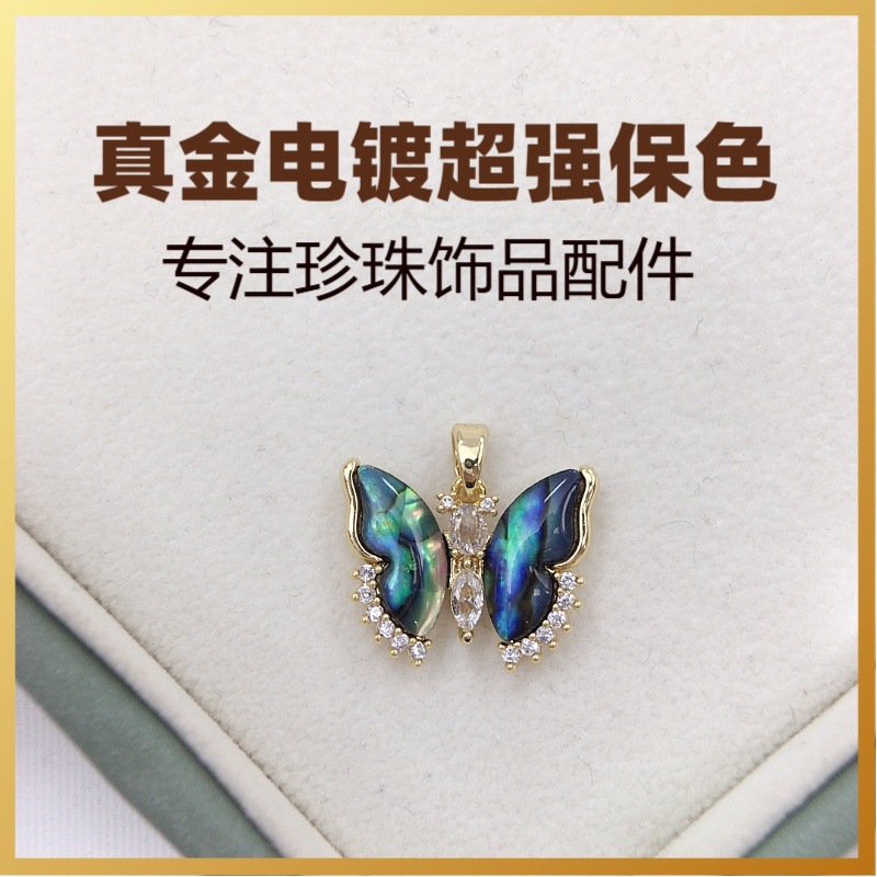 DIY Pendant Accessories Fashion Butterfly Natural Abalone Shell Micro-Inlaid Zircon Stacking Necklace Pendant Accessories Wholesale