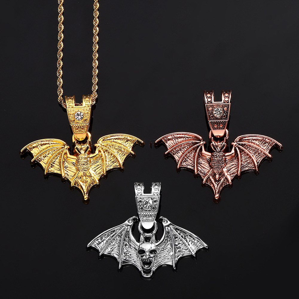 European and American Cross-border Halloween Bat Skull Oil Drop Alloy Pendant Personalized Exaggerated Hip-hop Men's Necklace Jewelry