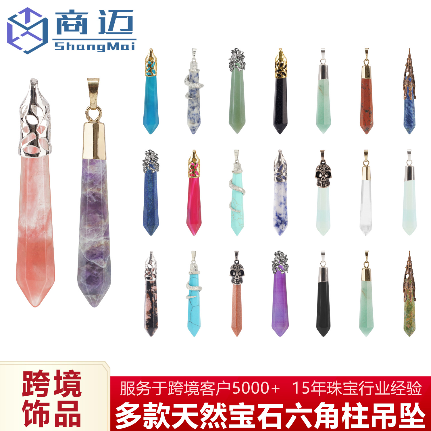 Cross-Border Jewelry Export Natural Crystal Stone Skull Pendant Creative Edging Retro Hexagonal Column Natural Stone Necklace