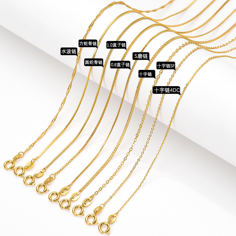 Korean chain S925 silver plated gold box chain cross chain necklace water wave chain naked chain clavicle chain discount manufacturers wholesale