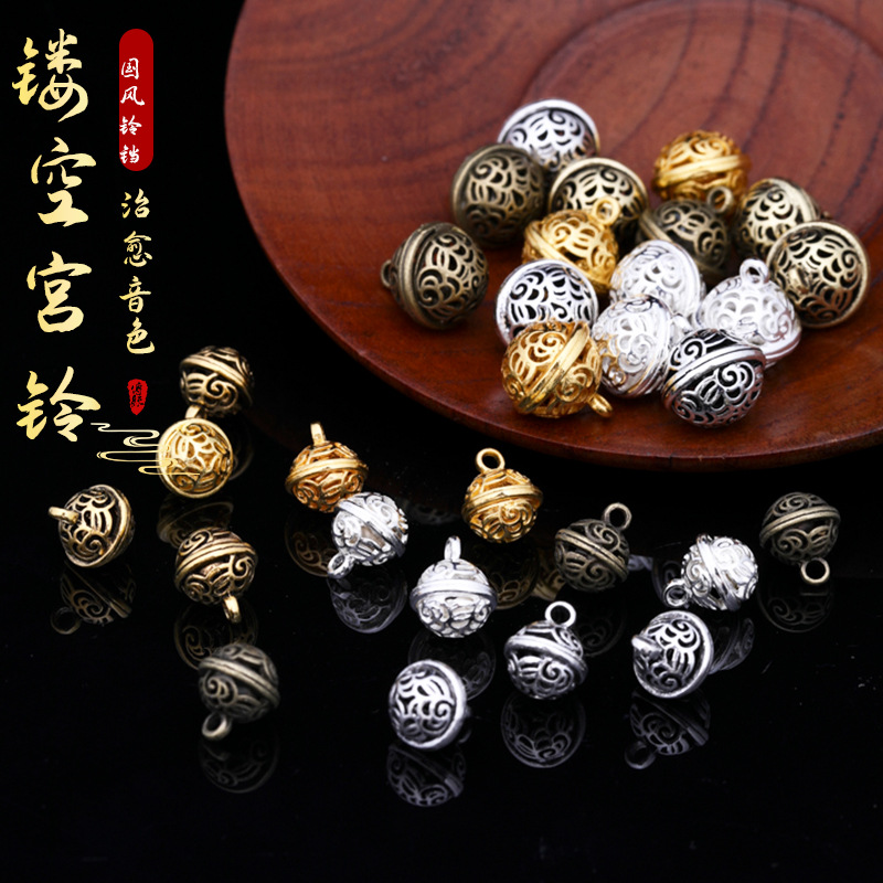 Flower Thousand Bones Bell Hollow Large Bell Pendant DIY Ancient Style Anklet Accessories Color-Retaining Clear Heart Bell Phone Charm