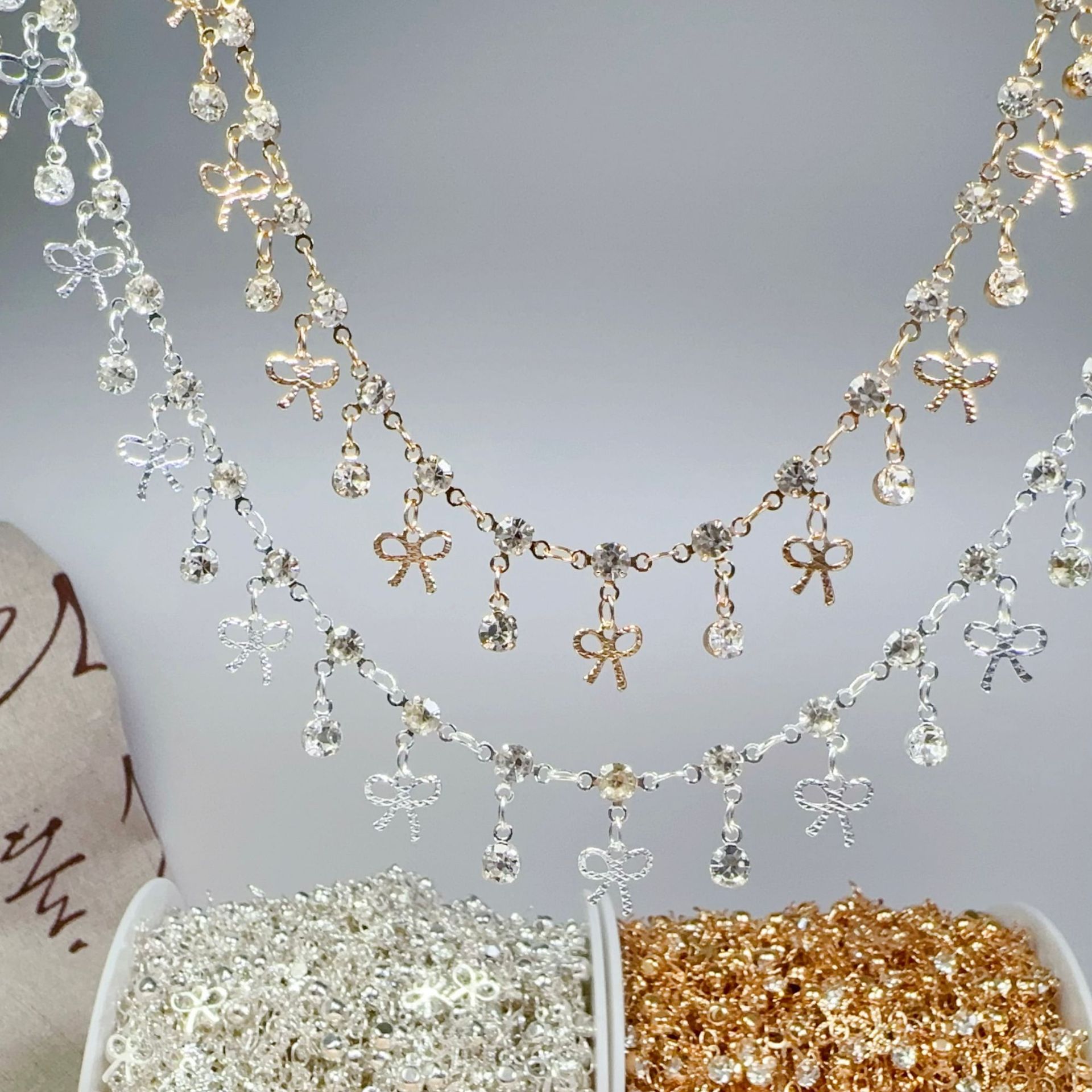 DIY jewelry accessories bow rhinestone chain three-claw drill antique handmade high color copper chain headscarf accessories