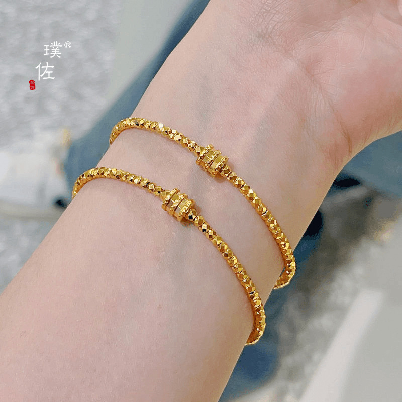 Gold shop with 24k bright gold small man waist disco ball bead bracelet women's flash broken gold design jewelry for girlfriend