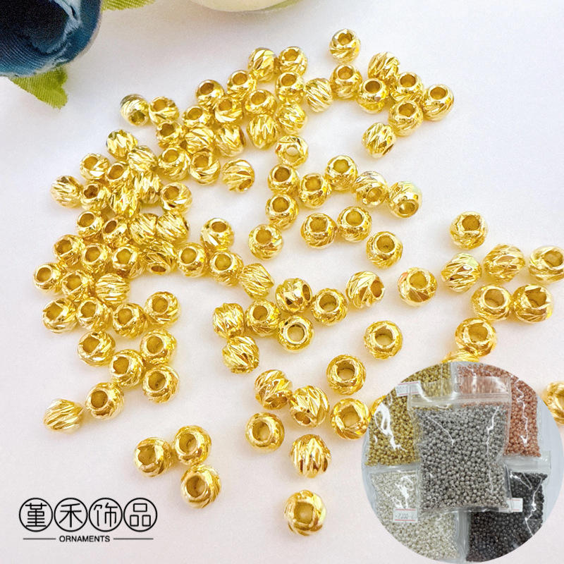 18K real gold color retaining copper diy handmade antique hollow beads beads flower ball earrings bracelet necklace beaded accessories