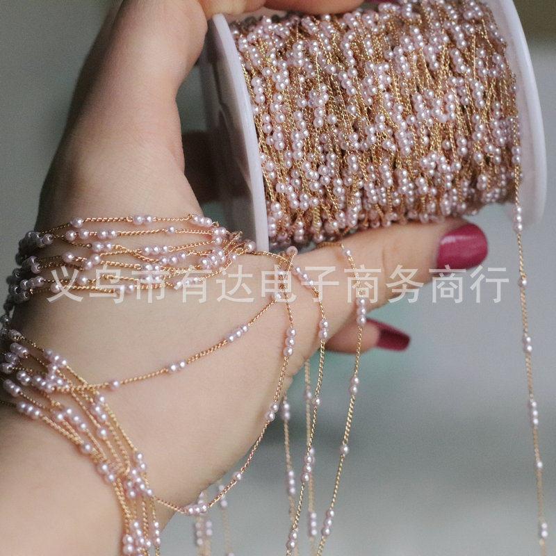 2mm Imitation Pearl Copper Chain Mini Pearl Chain Copper Plated 18K Real Gold Handmade Chain DIY Jewelry Material Accessories