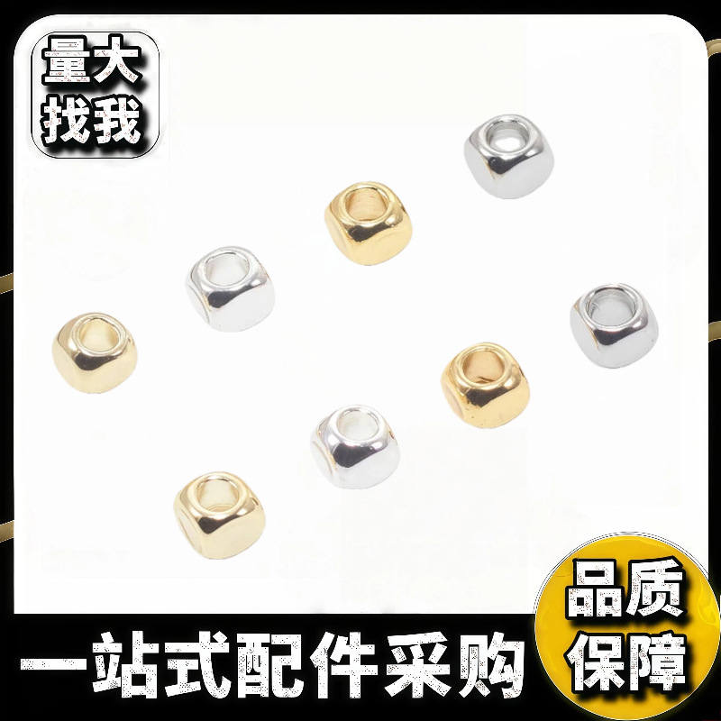 Copper Square Cut Corner Beads Real Gold Electroplating DIY Jewelry Spacer Beads Chamfered Spacer Beads Large Hole Beads Bracelet Necklace Loose Beads