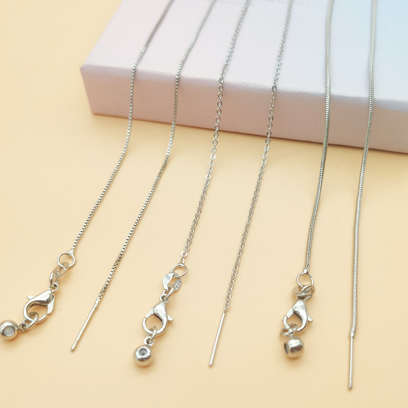 925 Silver-Plated Copper Universal Clavicle Plain Chain 45cm Wearable Bead Passepartout Needle Simple Necklace DIY Naked Chain