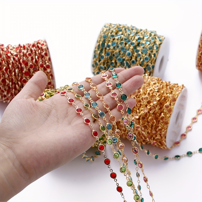 2026 Cross-Border New Style European and American 1m Copper Chain Necklace with Glass Inlaid Copper Chain Cross-Border Dropshipping