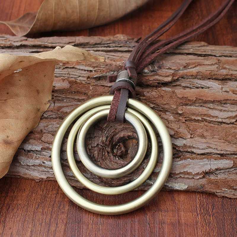 Double Ring Bohemian Style Necklace for Male and Female Students Three Ring Pendant Accessories Pendant Long Sweater Chain Wholesale