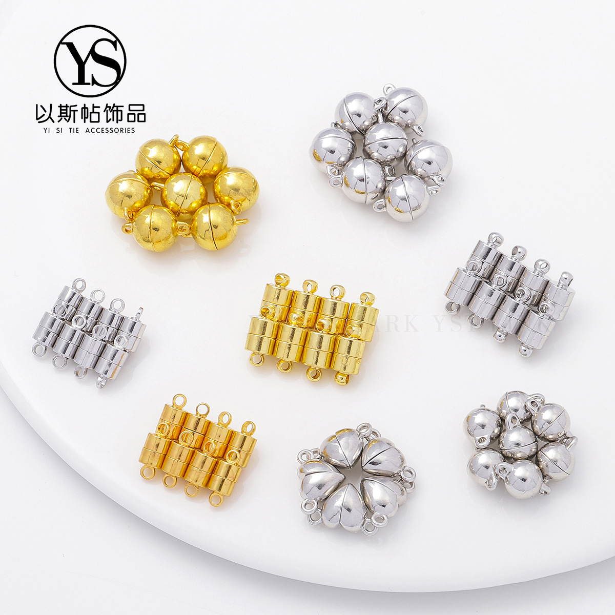 Color-Preserving 18K Gold-Filled Copper Ball Magnet Buckle Round Magnetic Buckle Bracelet Necklace Bracelet Connection Finishing Buckle DIY