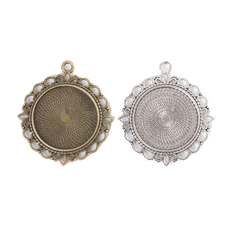 25mm double-sided alloy base diy jewelry accessories necklace pendant European and American lace Time Gem base pendant