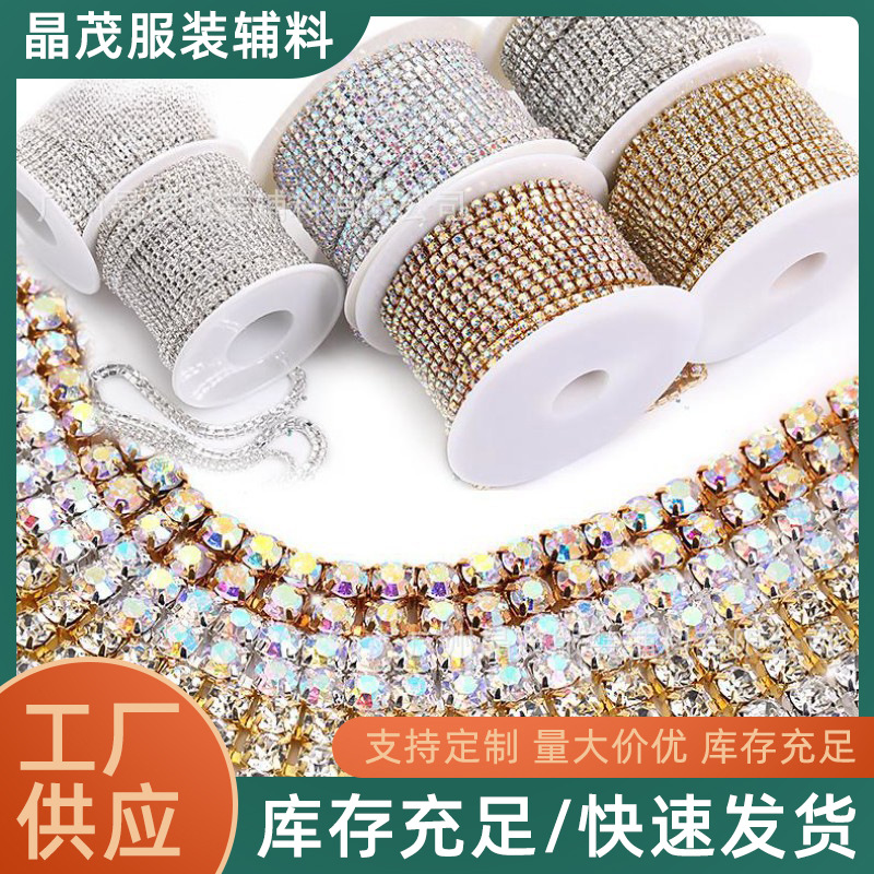 diy rhinestone claw chain drill chain 3mm double row color rhinestone chain dense claw chain clothing shoe bag decoration crystal drill
