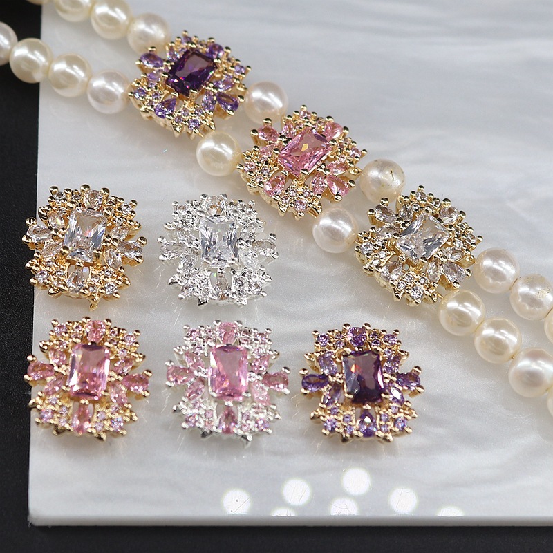 Gold-Plated Copper with Zircon Square Multi-Pass DIY Bracelet Necklace Spacer Beads Pearl Collarbone Chain French Palace Style