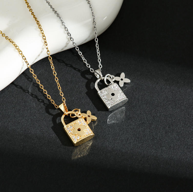 Cross-Border Amazon Hot-Selling Titanium Steel Necklace Women's Lock Pendant Niche Light Luxury Fashion Versatile Clavicle Chain Jewelry