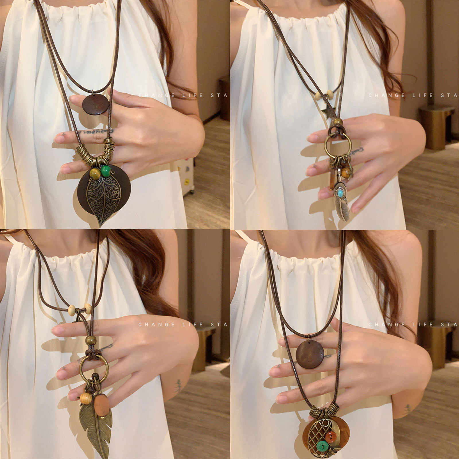New Chinoiserie Retro Long Sweater Chain Zen Feather Necklace Women's 2025 New Ethnic Style Stacking Accessories Jewelry
