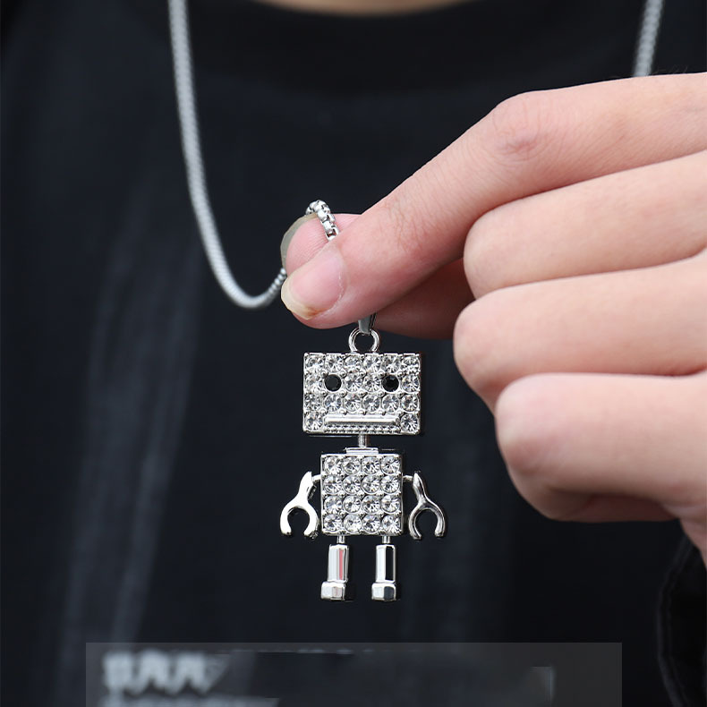 Japanese and Korean-style Full Diamond Robot Titanium Steel Necklace Hip-hop Street Pendant Sweater Chain Sweater Long Cold Style Accessories