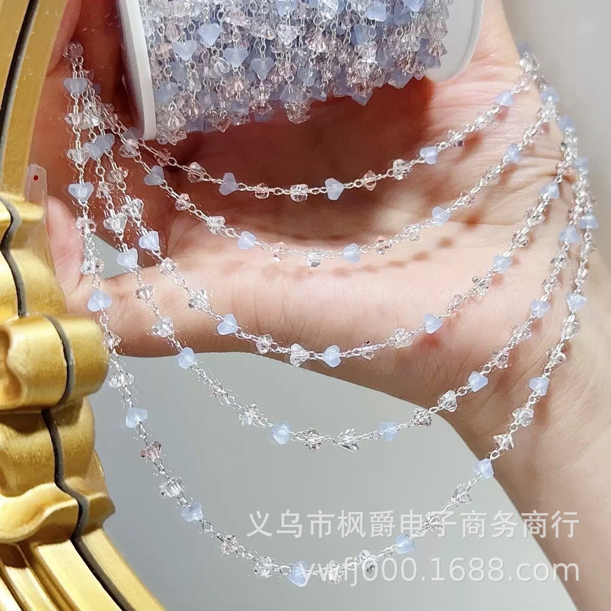 Blues Secret Realm~Diy Triangle Crystal Chain High Color Retention Pink White Blue Gradient Crystal Copper Chain Bracelet Jewelry Materials
