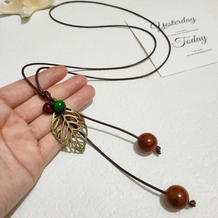 in stock New Chinese Zen Retro Autumn and Winter New Handmade Rope Leaves Long Woolen Chain Versatile Necklace Women