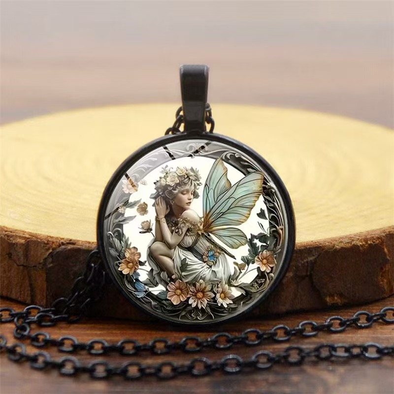 Retro angel fairy time gem pendant necklace female Joker European and American fashion retro sweater chain jewelry wholesale