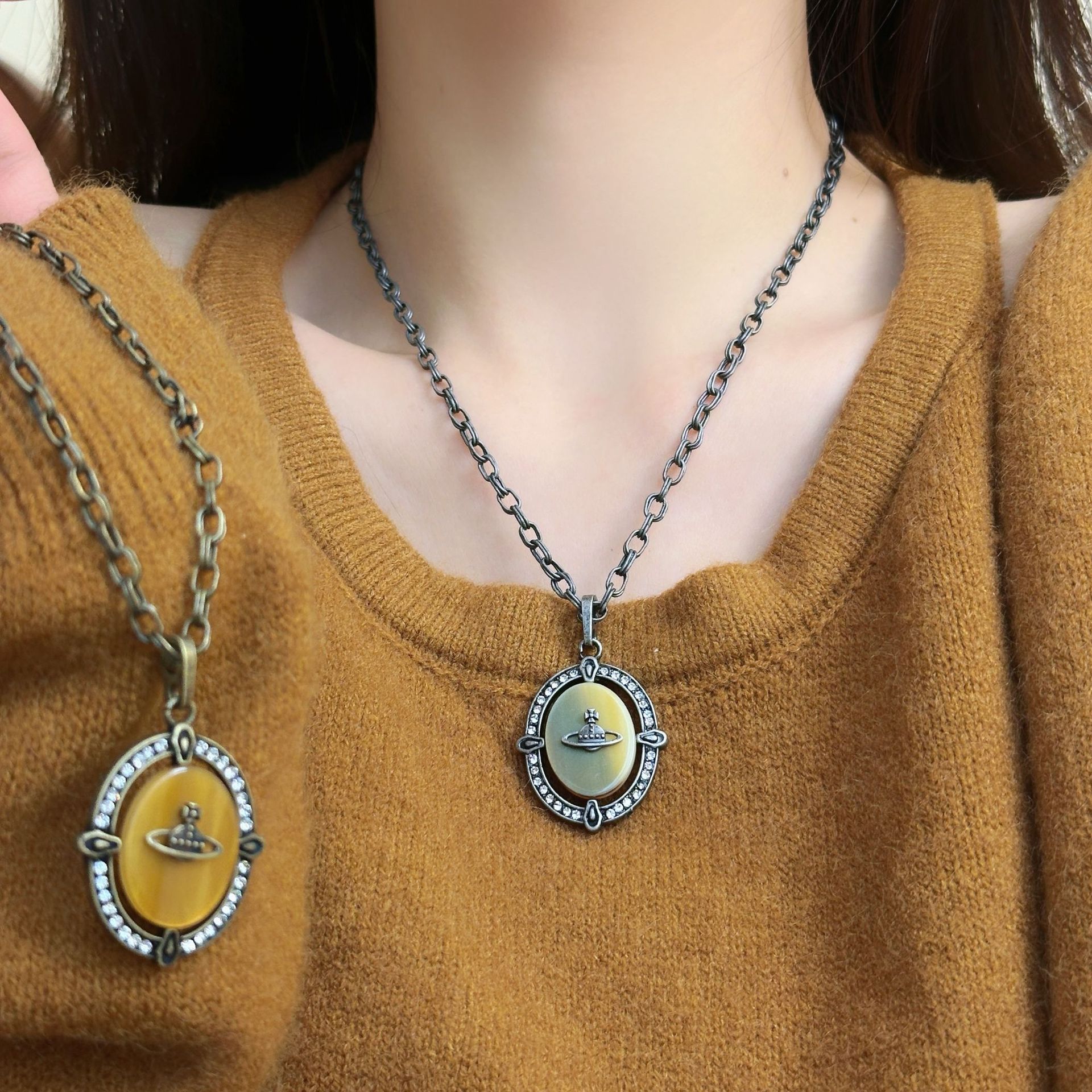 Explosive oval earth round brand pendant star necklace niche unique personality design fashion luxury long sweater chain