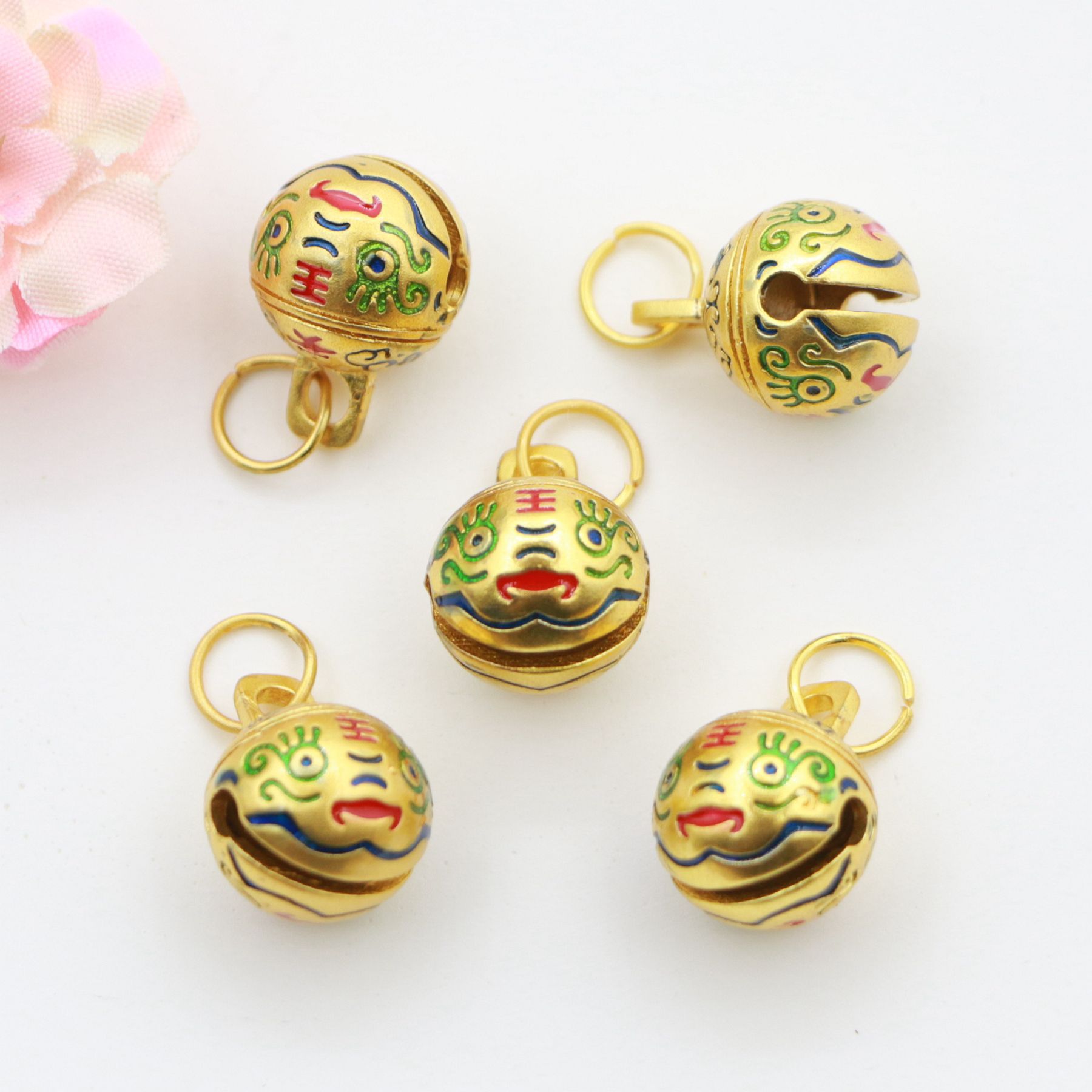 Color-Preserving Gold-Swallowing Beast Tiger Head Safety Bell Treasure Brass Accessories Pendant Necklace Keychain Jewelry Pendant Wholesale
