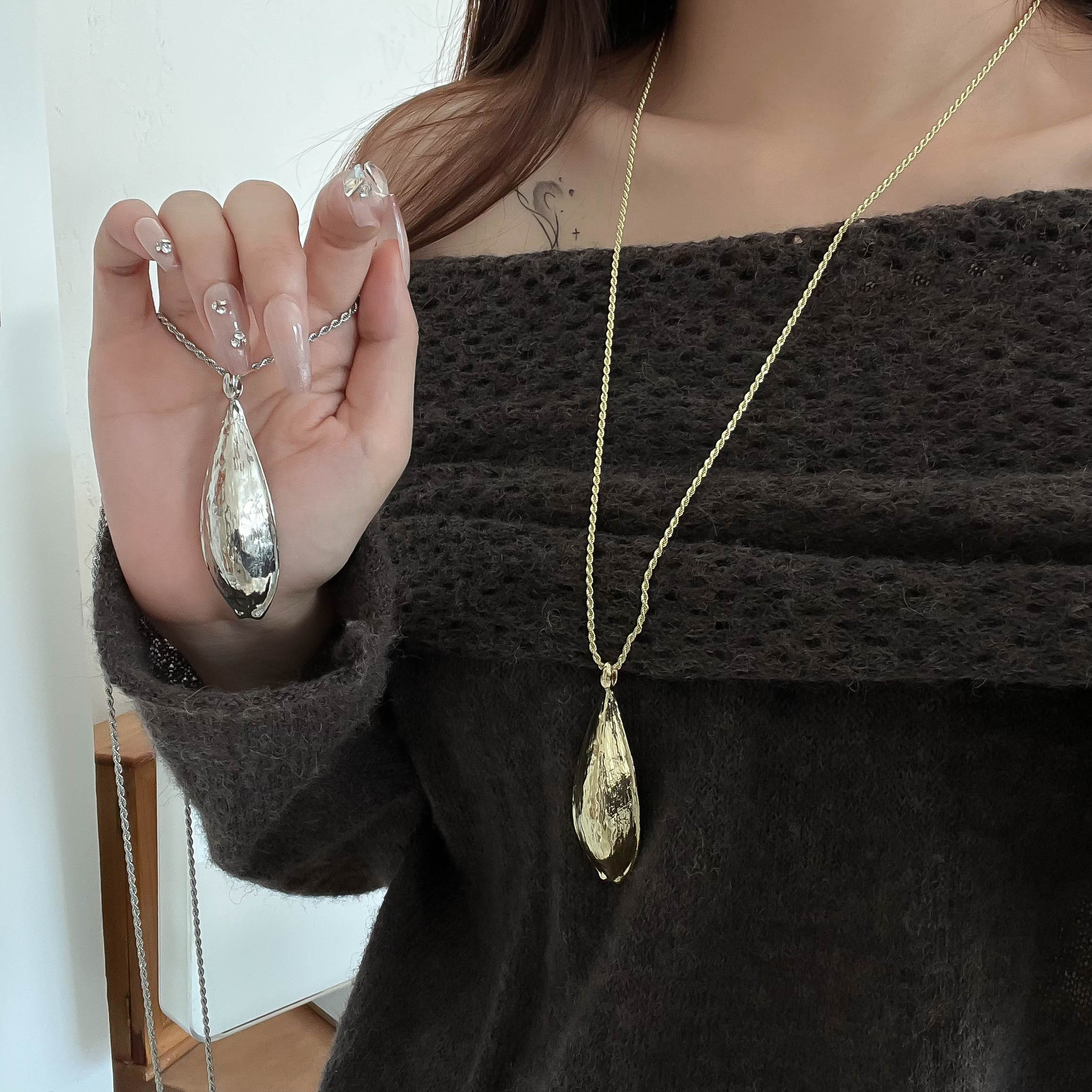 Trendy Personality Water Drop Pendant Necklace for Men and Women, Simple Versatile Design, Long Sweater Chain Neck Accessory