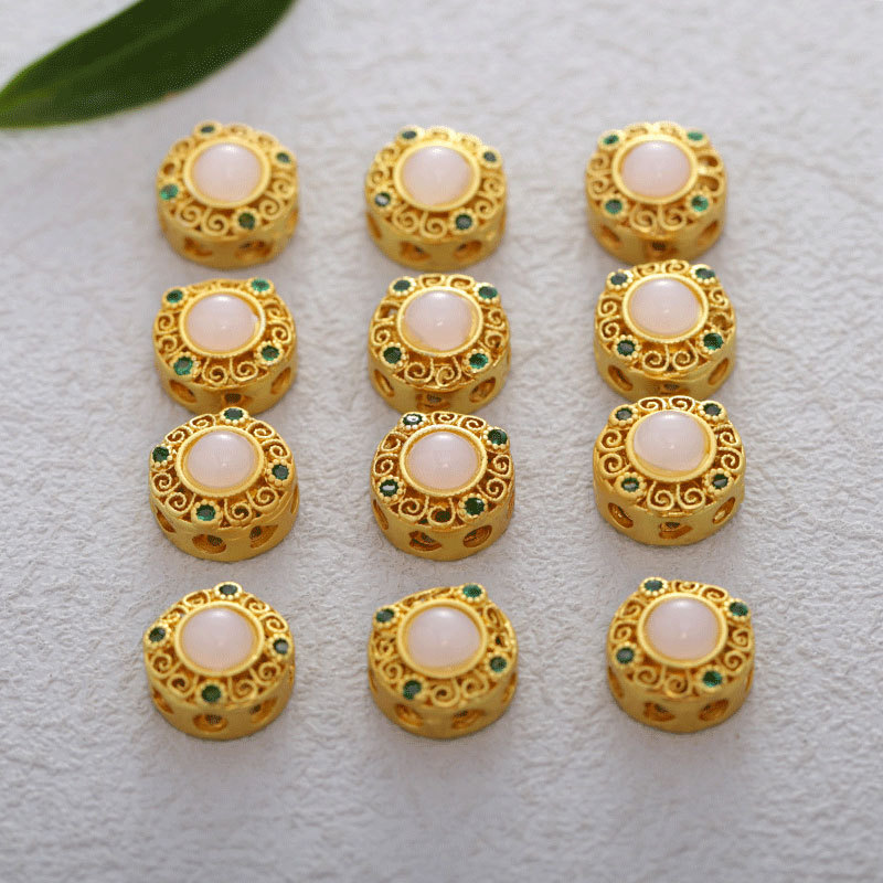 Ancient Gold Cut Out Inlaid Jewelry Jade Spacer Beads Accessories Beaded Bracelet Necklace Loose Beads DIY Jewelry Accessories