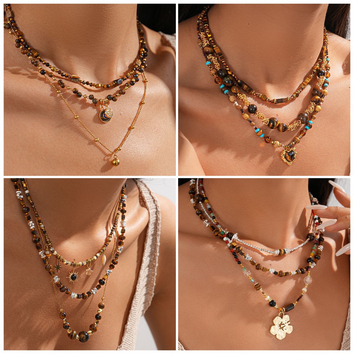 European and American Cross-Border Zircon Round Beaded Necklace Maillard Style Niche Sweater Chain Light Luxury High-End Necklace