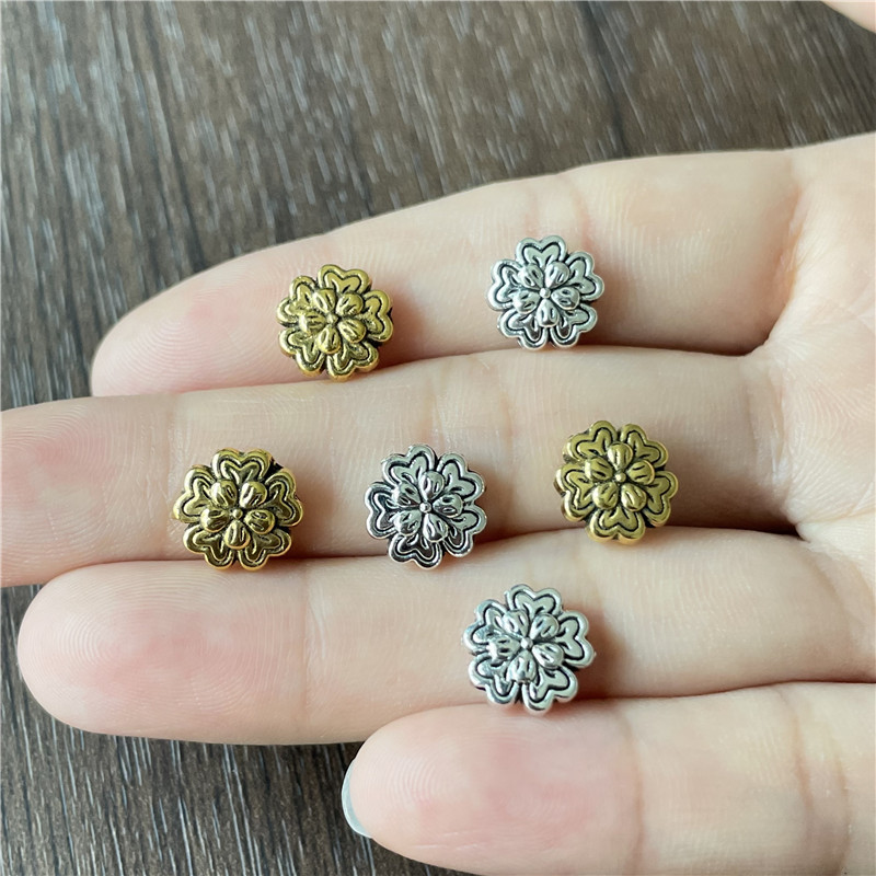 Ancient Silver 10mm Flower Alloy Bead Bracelet Bead Necklace with Beads Decorative Beads diy Alloy Jewelry Accessories