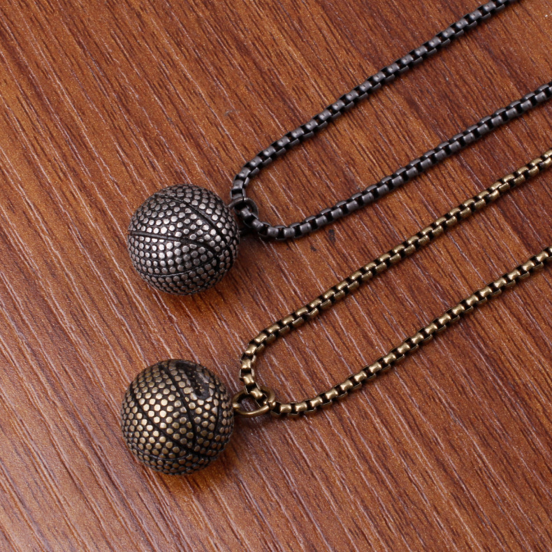 New hot cross-border foreign trade jewelry wholesale European and American personality retro basketball titanium steel pendant necklace wholesale