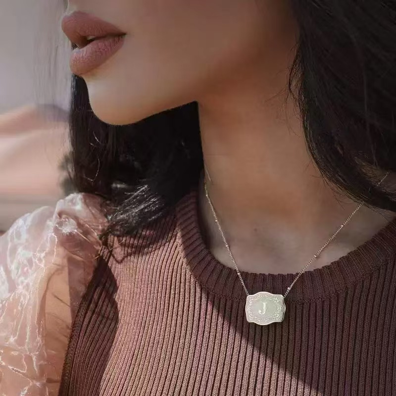 Cross-Border Amazon Hot-Selling 26 English Letters A-Z Belt Buckle Necklace Embossed Steel Necklace Belt Buckle Shape in Stock