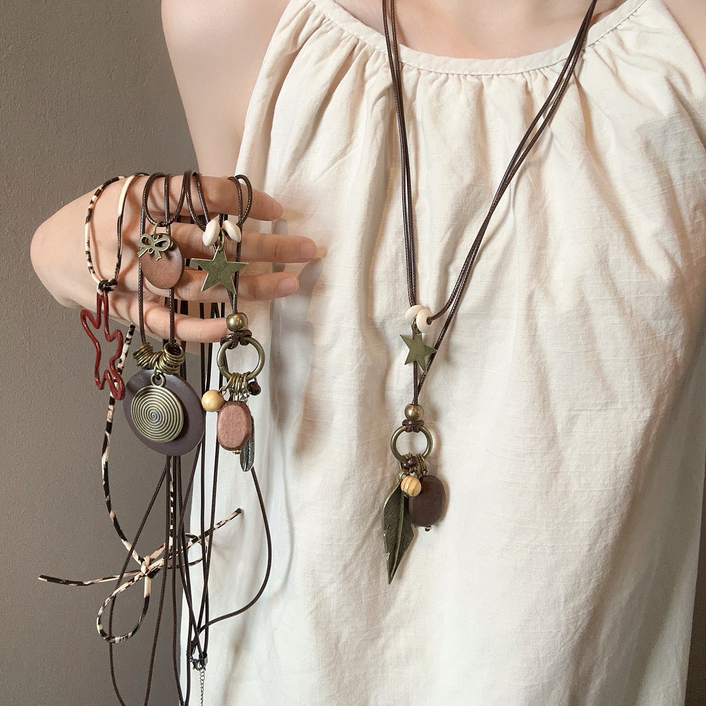 Retro Ethnic Style Pendant Necklace for Women, Bohemian Style Double-Layered Long Sweater Chain, New Chinoiserie Accessories