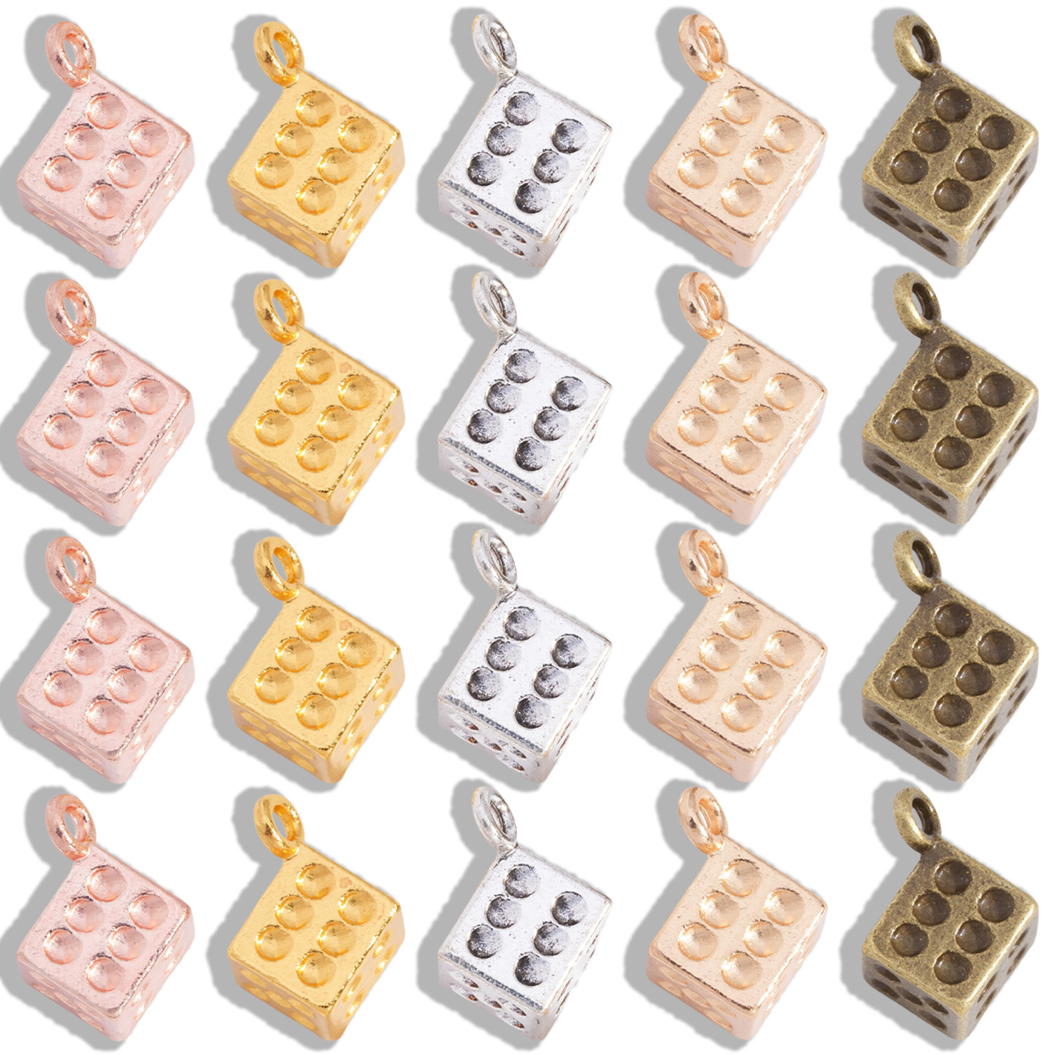 DIY Retro Alloy Jewelry Accessories Multi-Color Three-Dimensional Dice-Shaped Pendants Cross-Border Hot-Selling Necklace Earrings Pendants