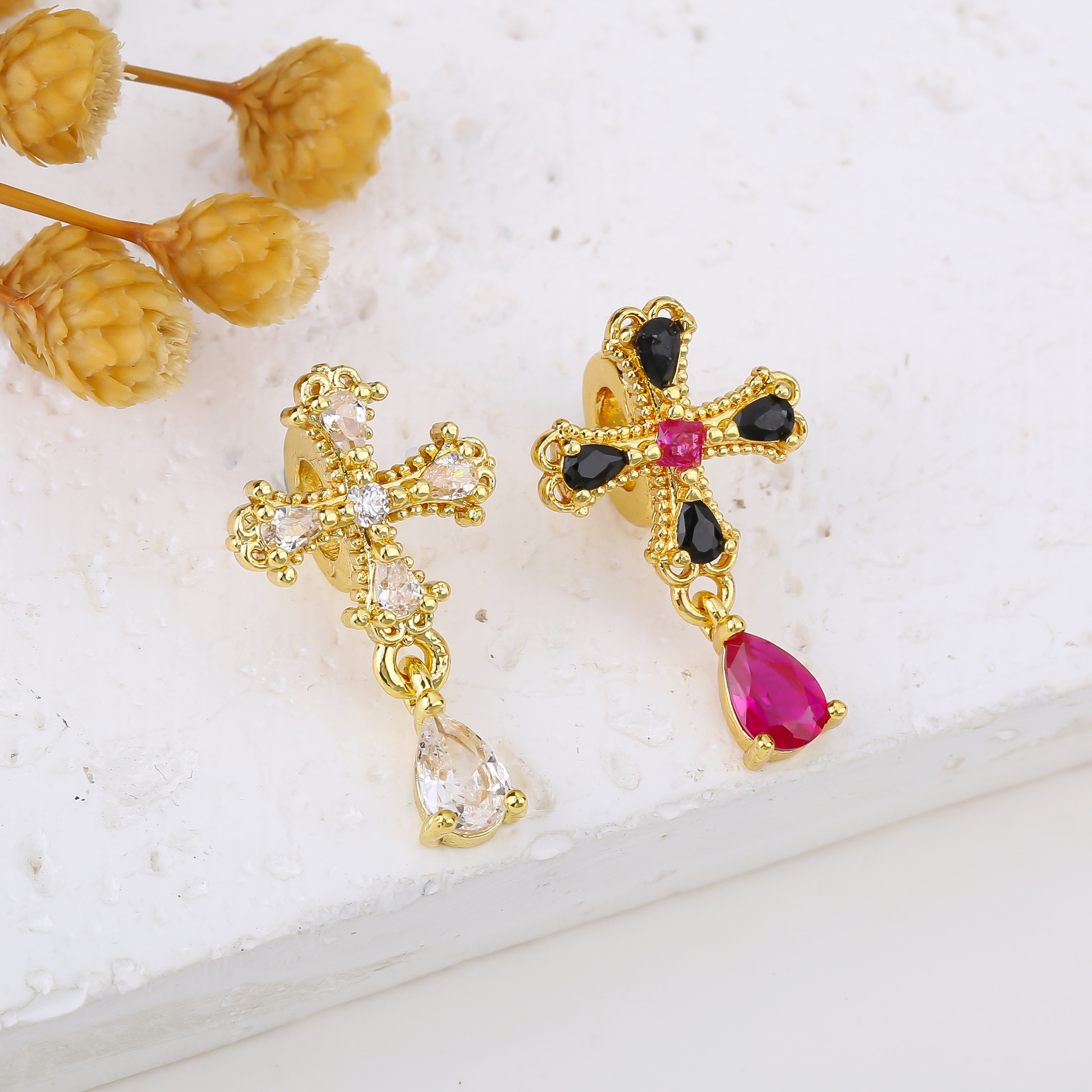 18K Gold-Filled Micro-Inlaid Zircon Tassel Cross Pendant Crystal Bracelet Necklace DIY Accessories