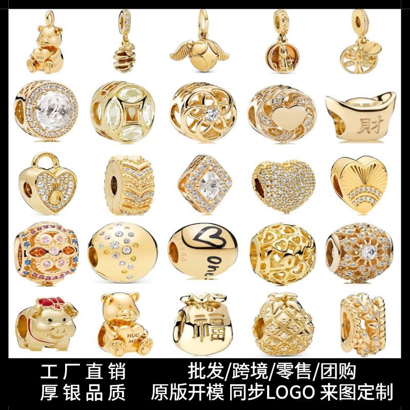 Panjiora Electroplated Gold Series Charm Fixed Buckle DIY Loose Beads Cut Out Heart Pendant Bracelet for Girls