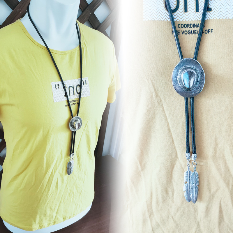 A01B2C29 silver hat Korean style polo necklace men's all-match short-sleeved accessories new design long collar rope