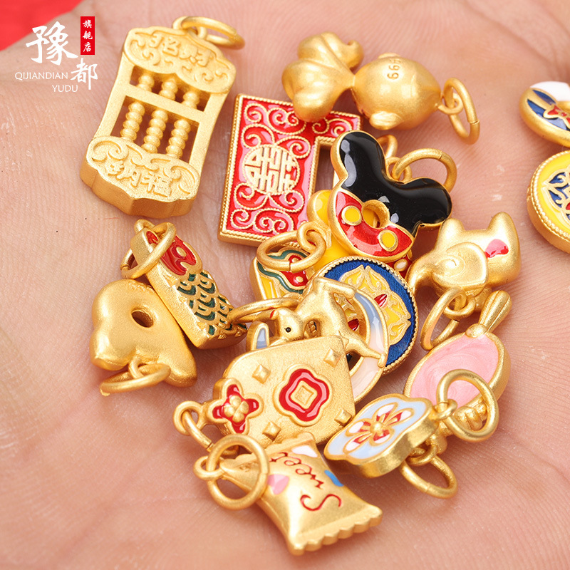Gold-Plated Accessories Chinese Style Bracelet DIY Woven Jewelry Fortune Character Necklace Bracelet with Ancient Burnt Blue Enamel