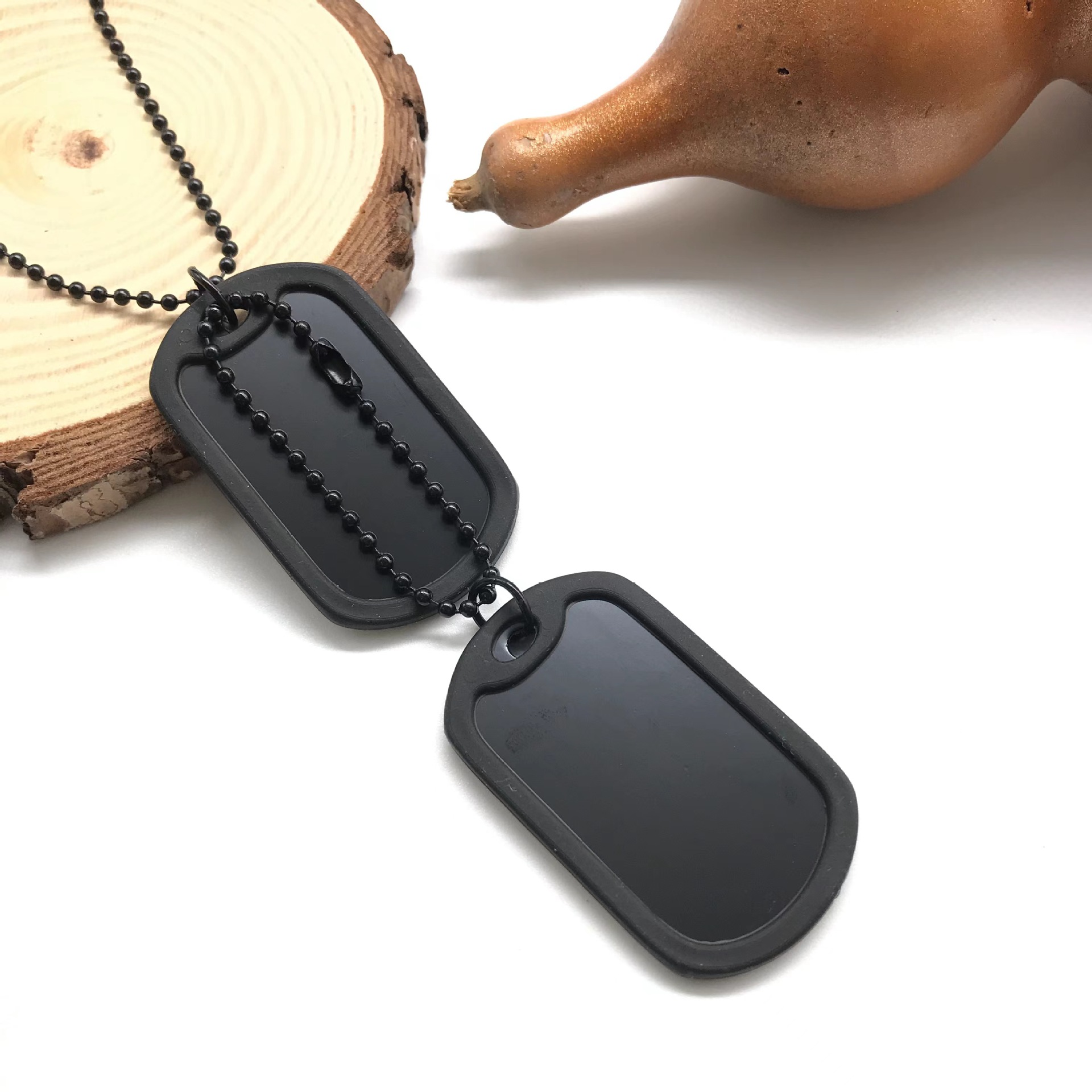 Foreign Trade European and American Personalized Dog Tag Necklace Sweater Chain Glossy American Soldier Rubber Sleeve Military Brand Double Tag Long Necklace