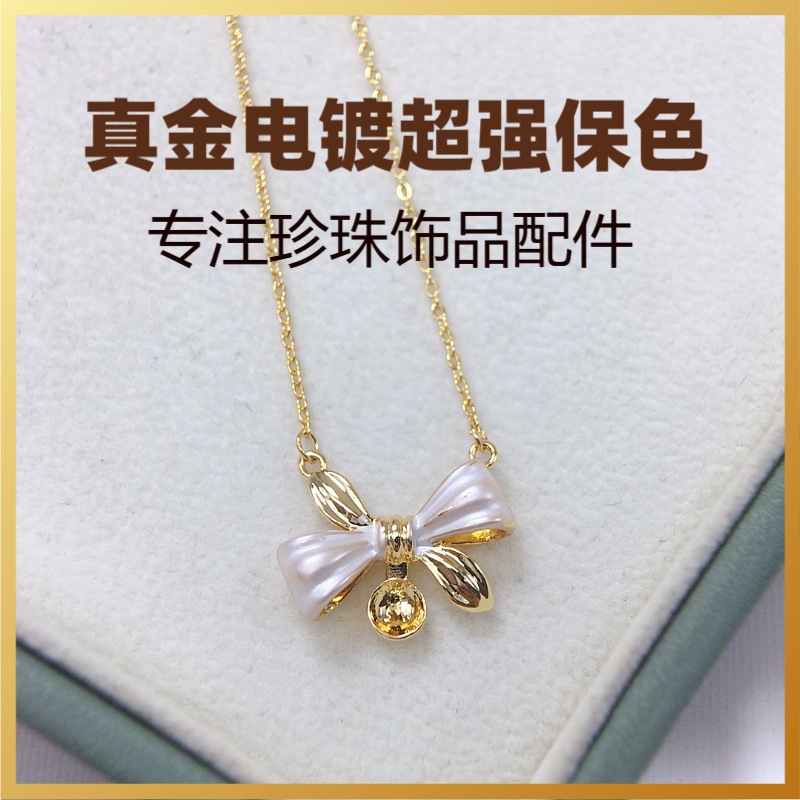 Pendant Set Chain DIY Pearl Pendant Empty Holder Pearl Accessories Fashion Painted Bow Two-Color Wholesale