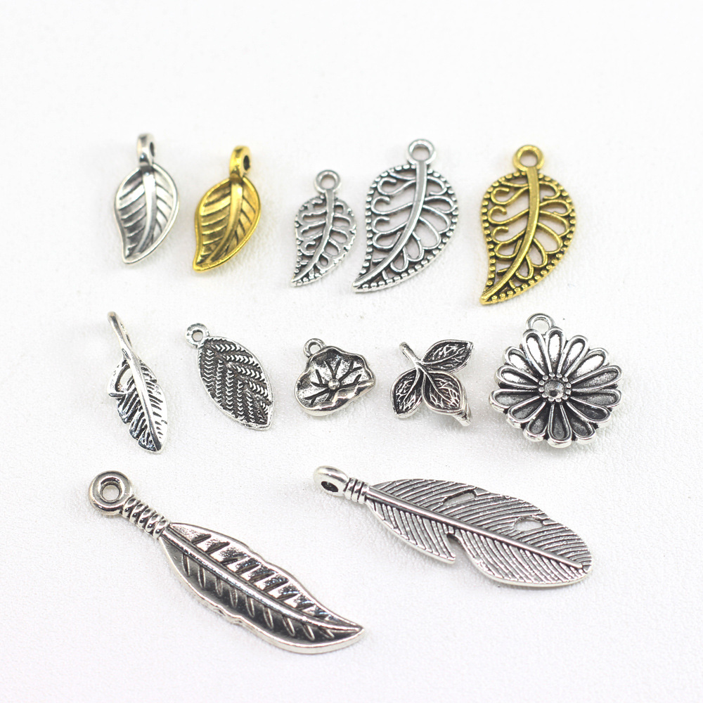 DIY Leaf Feather Leaf Ornament Accessories Pendant Alloy Electroplated Leaf Lotus Leaf Bracelet Keychain Small Pendant