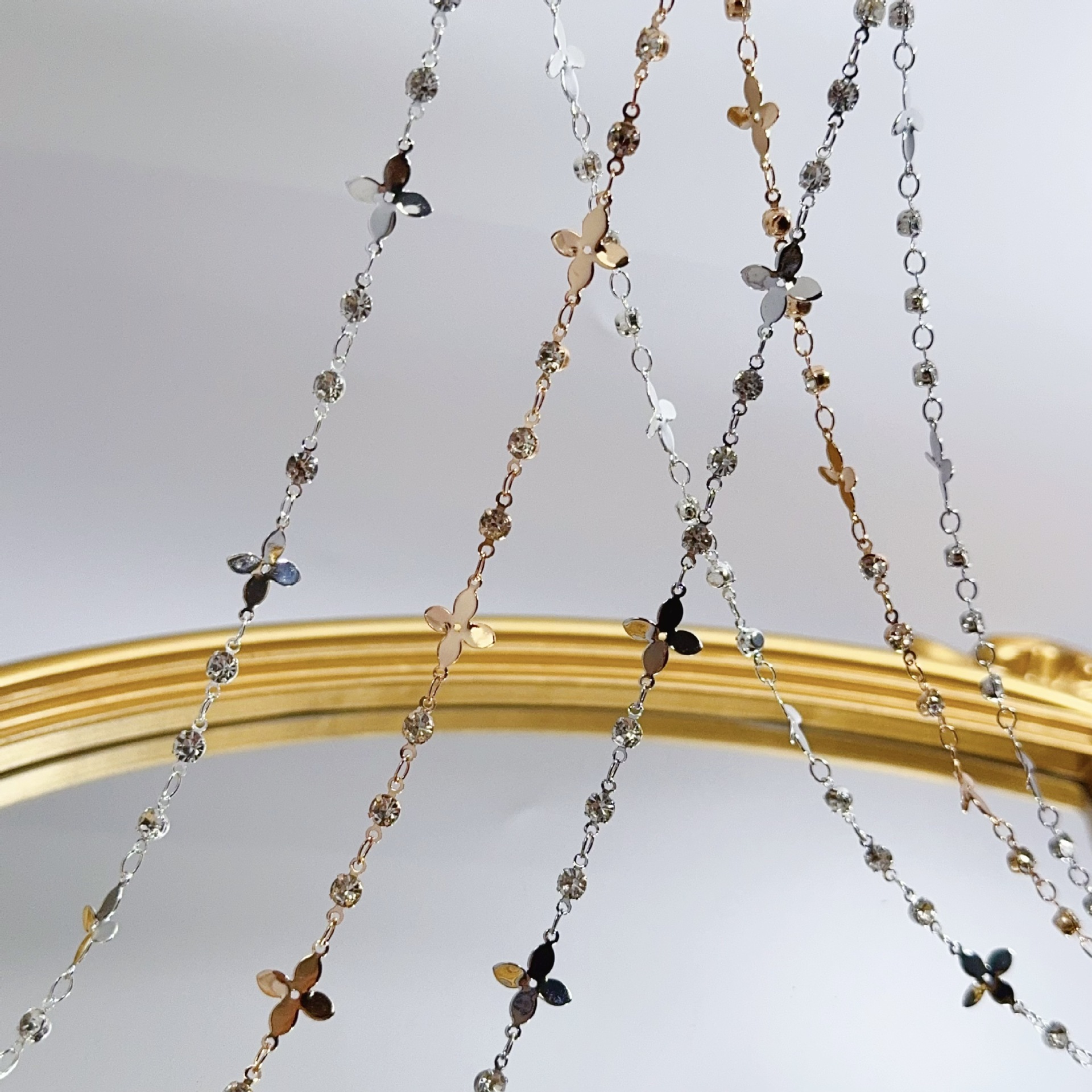 DIY Chain Twisted Clover with Diamond Tassel Chain Color-Preserving Handmade Copper Chain Ancient Style Jewelry Headscarf Clothing Accessories