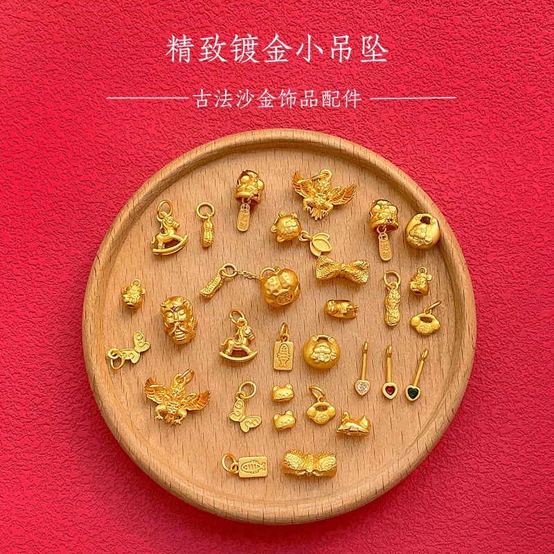 Ancient Gold 24K Real Gold Electroplating Chinese Style Exquisite Accessories Pendant Mermaid Heart Bear DIY Handmade Bracelet String Ornaments