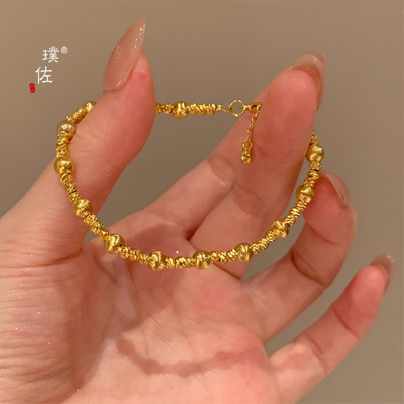 Puzuo Gold Shop's Same Style Sand Gold Cat's Eye Cut Flower Bead Bracelet for Women, Accessible Luxury, High-End, Sparkling White Belt Bracelet for Girlfriend