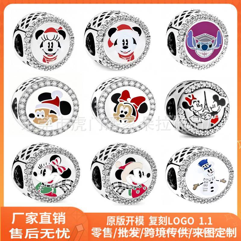 Panjia white copper S925 silver-plated double-sided epoxy beads diy accessories loose beads charm bracelet