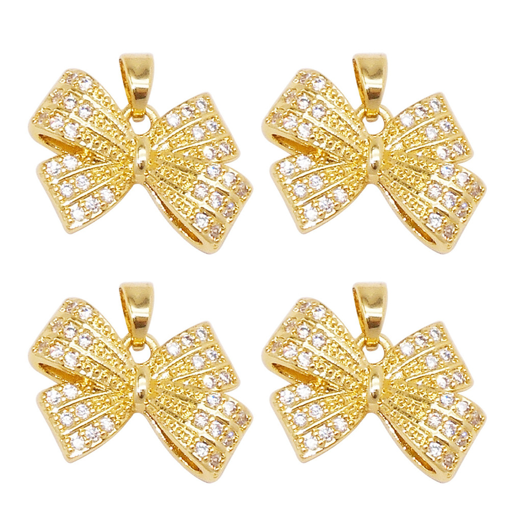 Gold Bow Pendant Inlaid with Zircon Brass Bow DIY Jewelry Accessories High-End Necklace Earrings Accessories