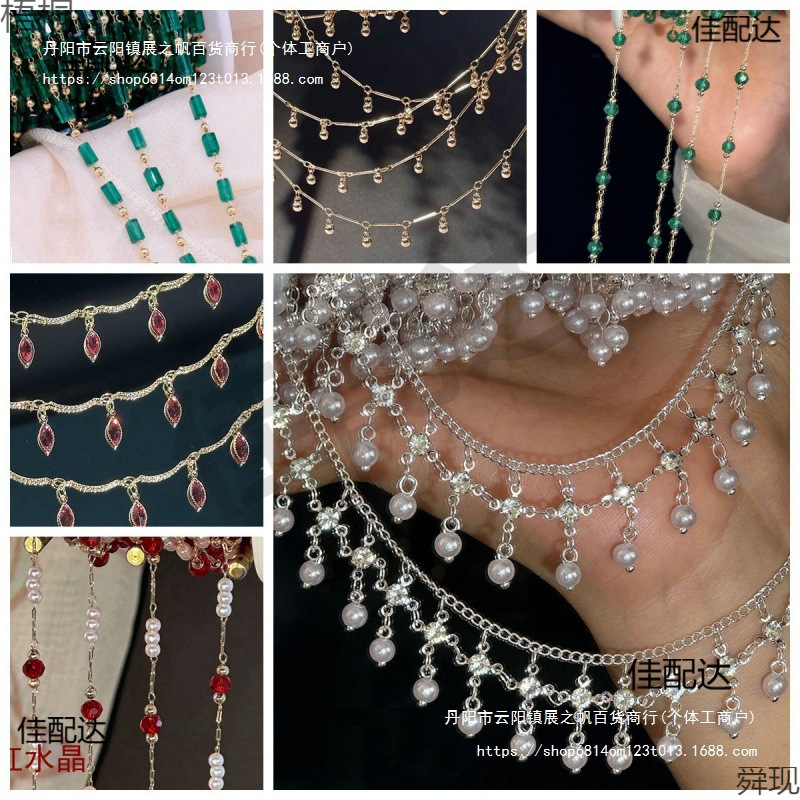 DIY Handmade Dunhuang Ancient Style Jewelry Tassel Chain Copper Chain Accessories Zircon Whisker Chain Pearl Pendant Chain Material