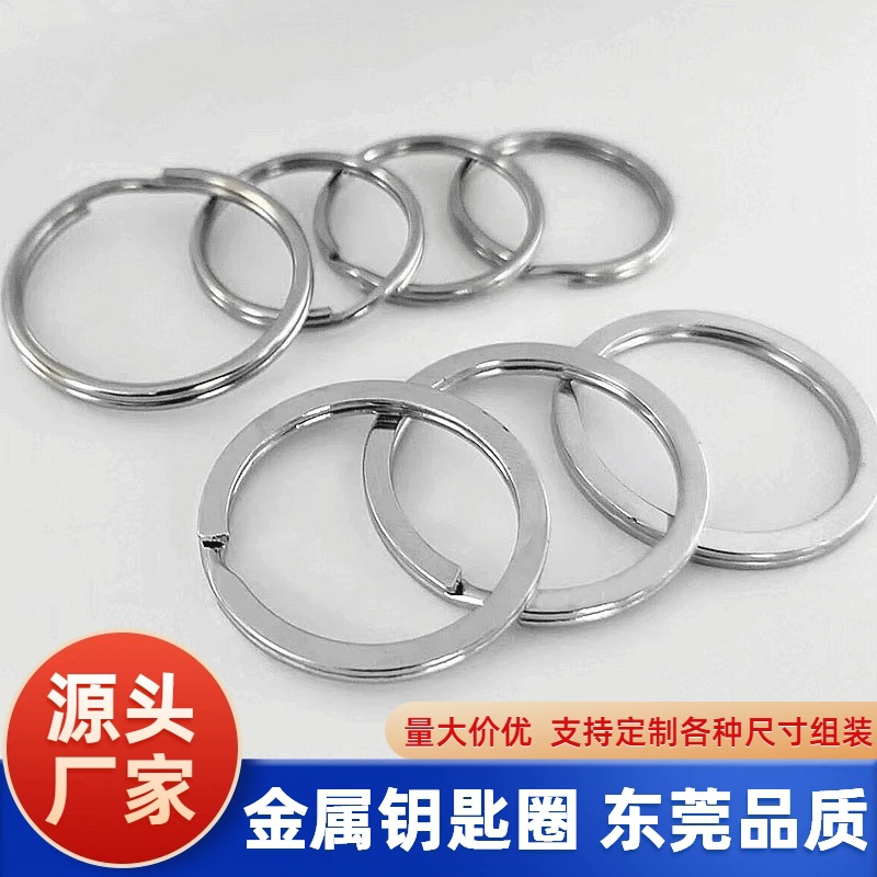 Manufacturer's Ready-Made Metal Key Ring Stainless Steel Key Chain Aperture Flat Ring Hanging Ring with Chain Set Trendy Toy Accessories